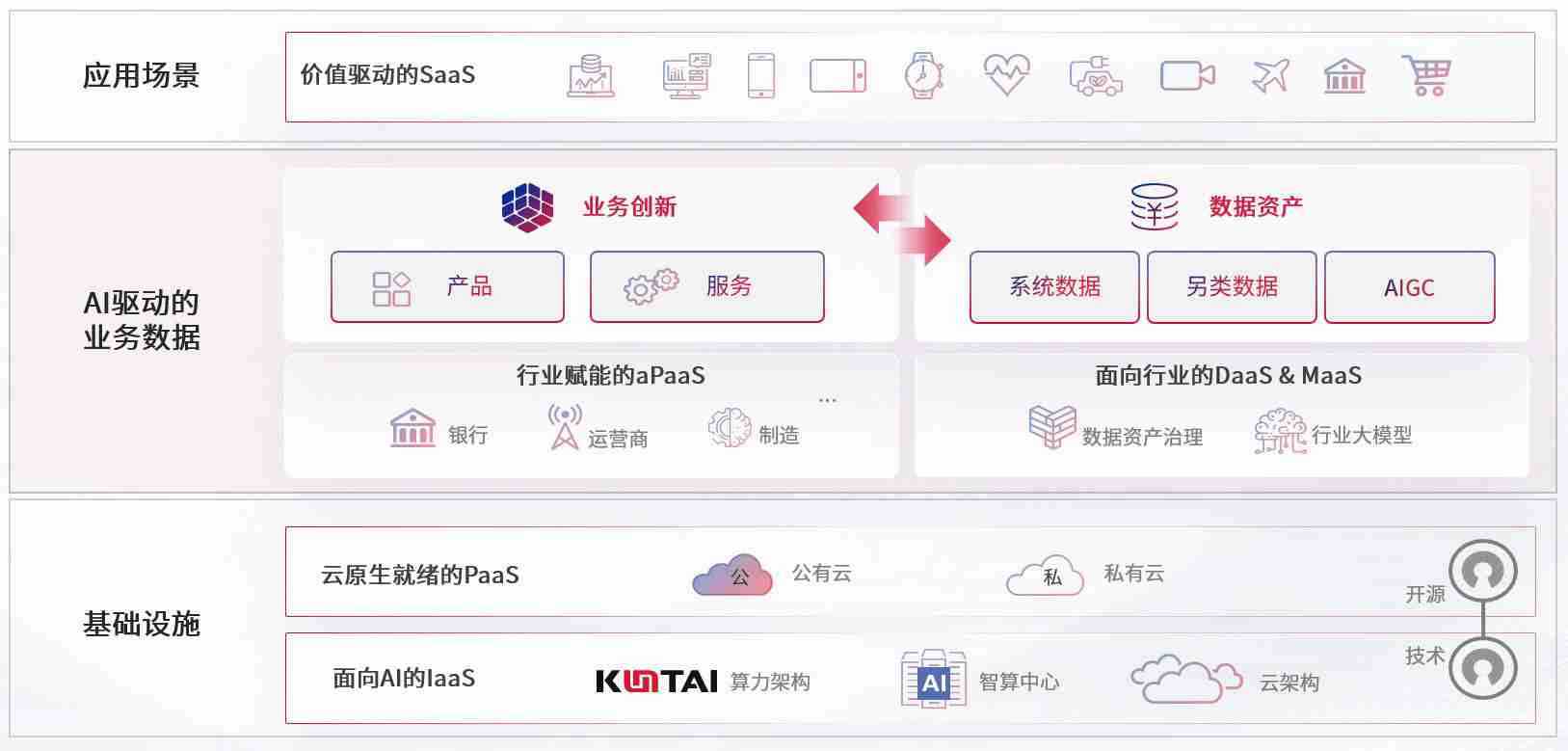 数字时代,,,,围绕企业数字化转型的关键要素,,,,z6com尊龙凯时数码开创性的提出数云融合战略和技术体系框架,,着力在云原生、、数字原生、、、、AI原生和信创产业上架构产品和服务能力,,为处在不同数字化转型阶段的快消零售、、、、汽车、、、金融、、、、医疗、、、、政企、、、教育、、、、运营商等行业客户提供泛在的敏捷IT能力和融合的数据驱动能力,,构建跨界融合创新的数字业务场景和新业务模式,,助力企业级客户建立面向未来的核心能力和竞争优势,,,,全面推动社会的数字化、、、智能化转型升级。。